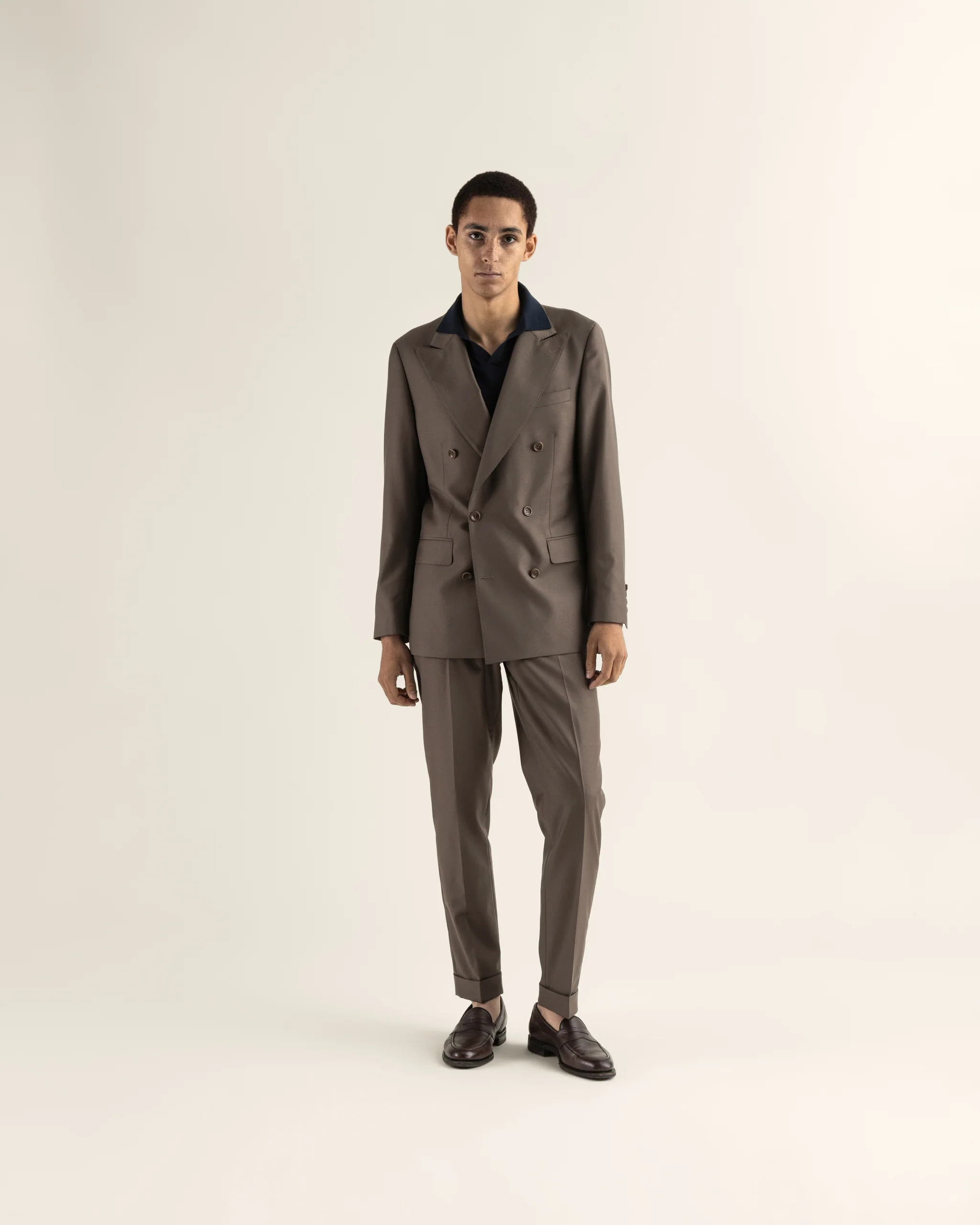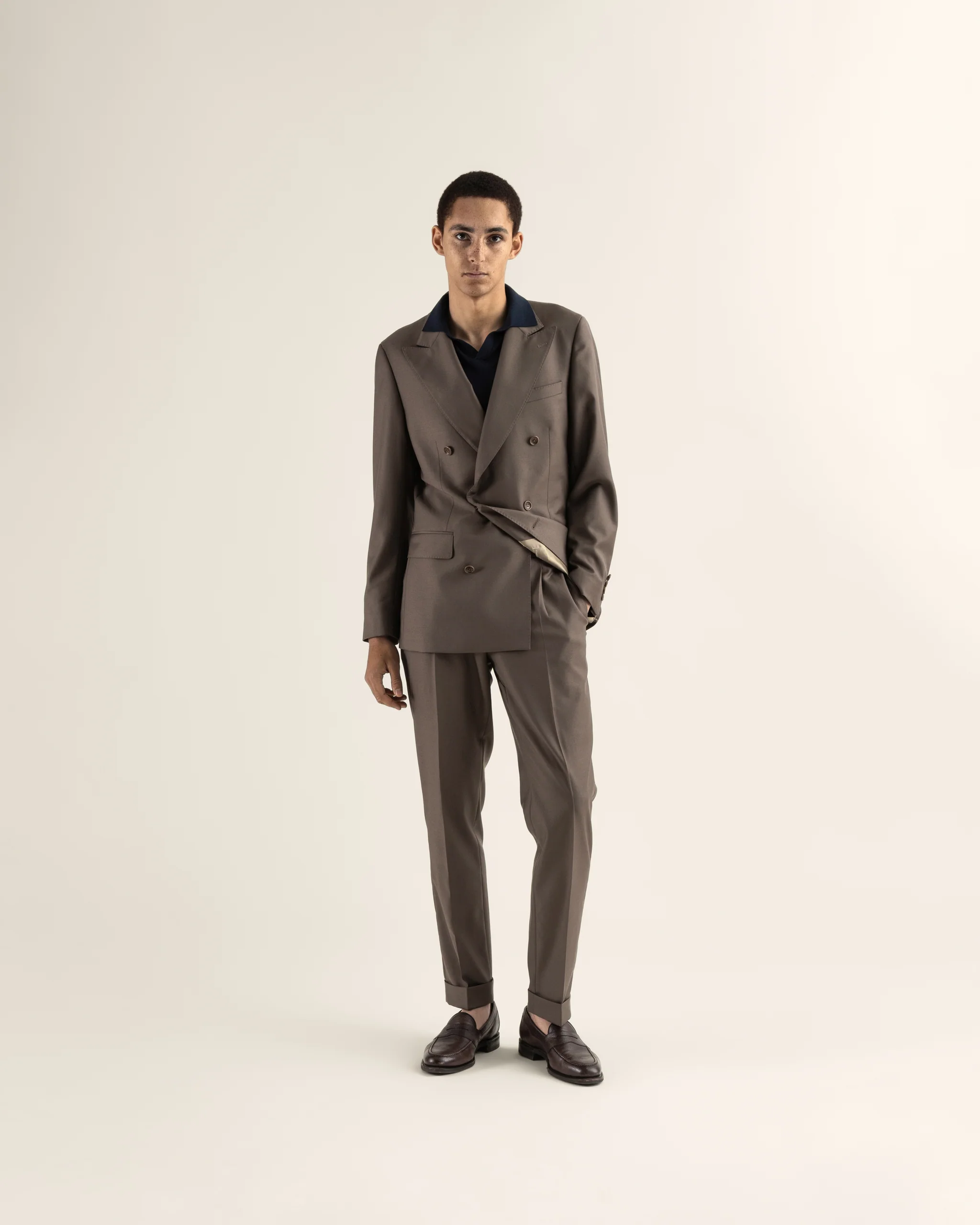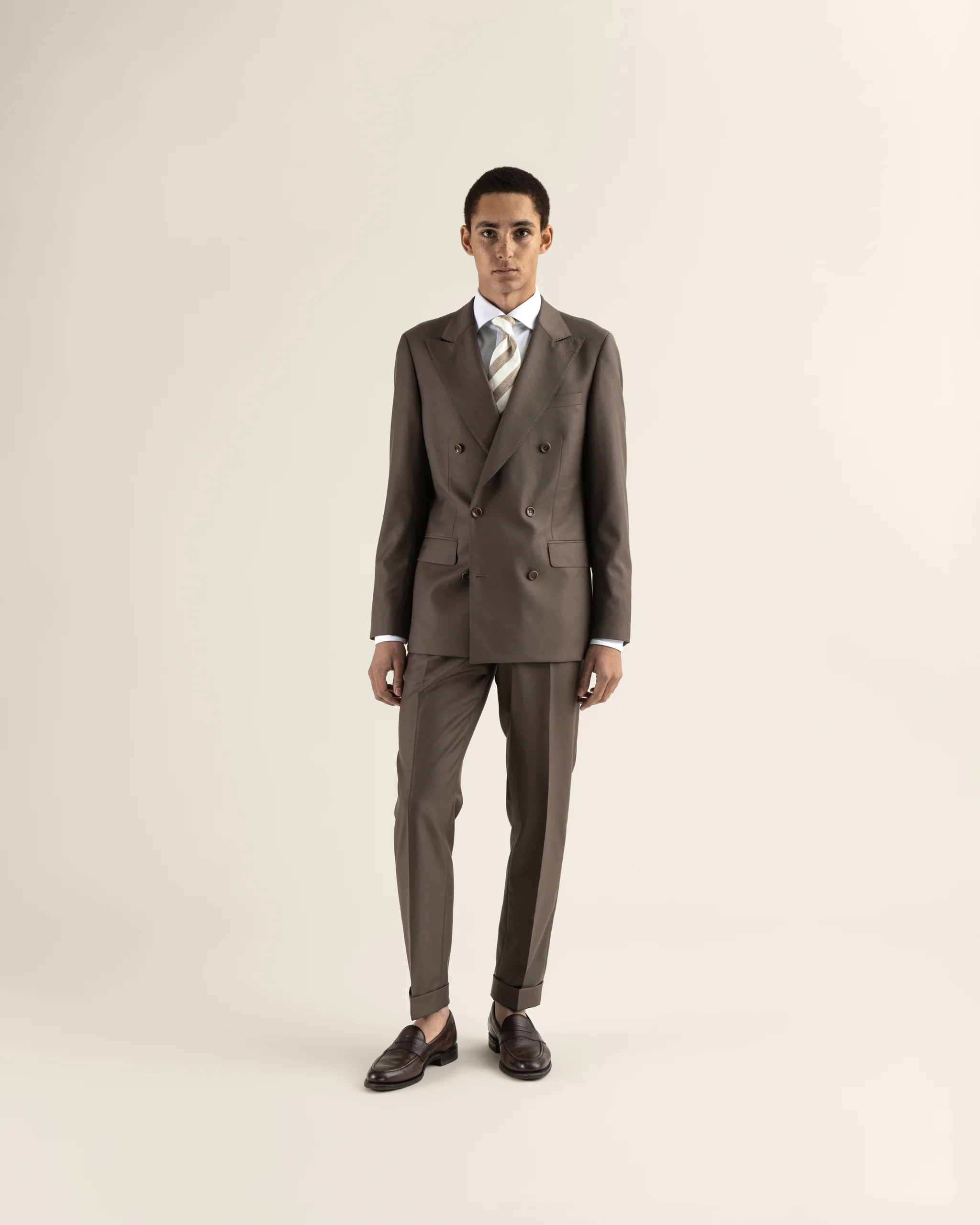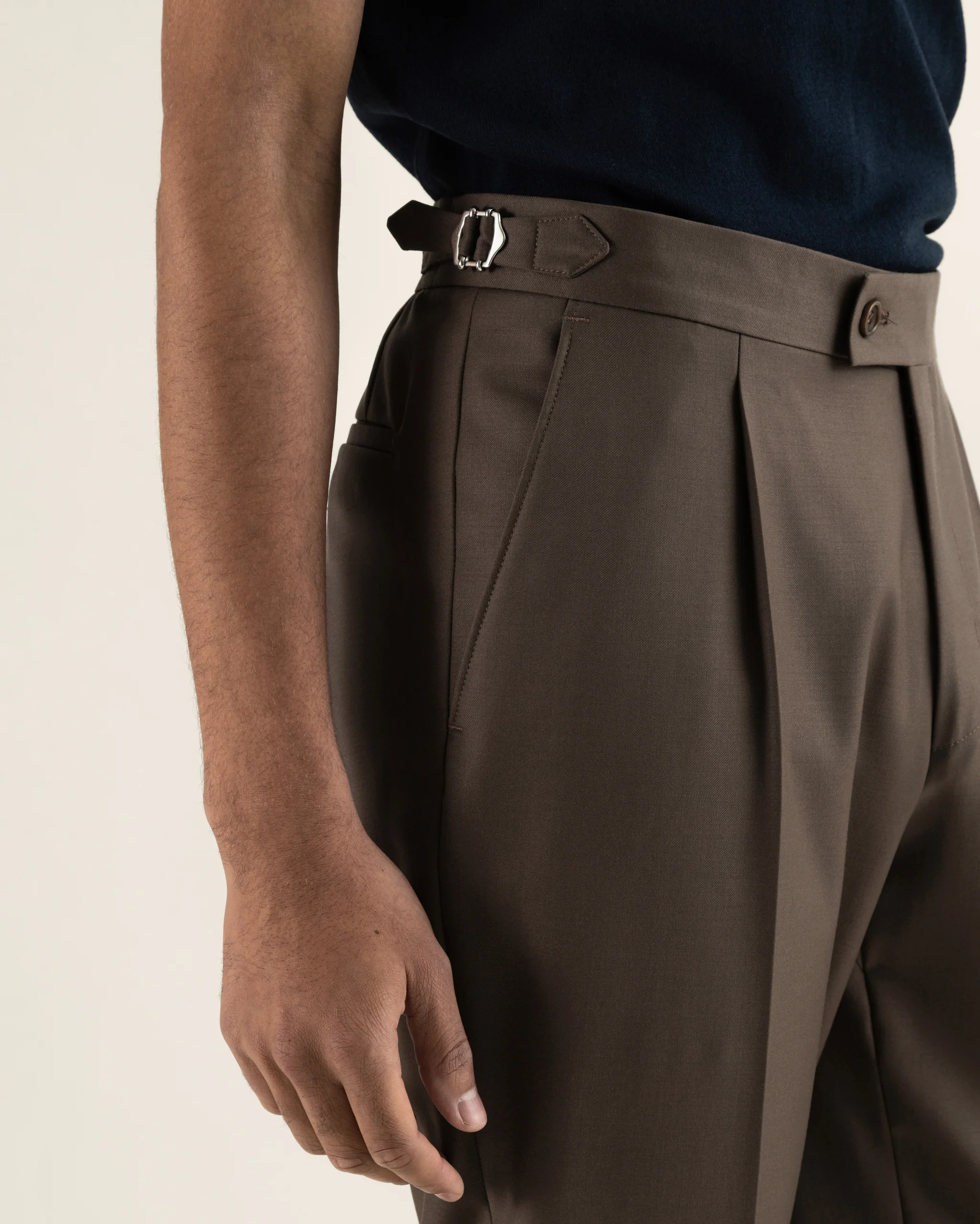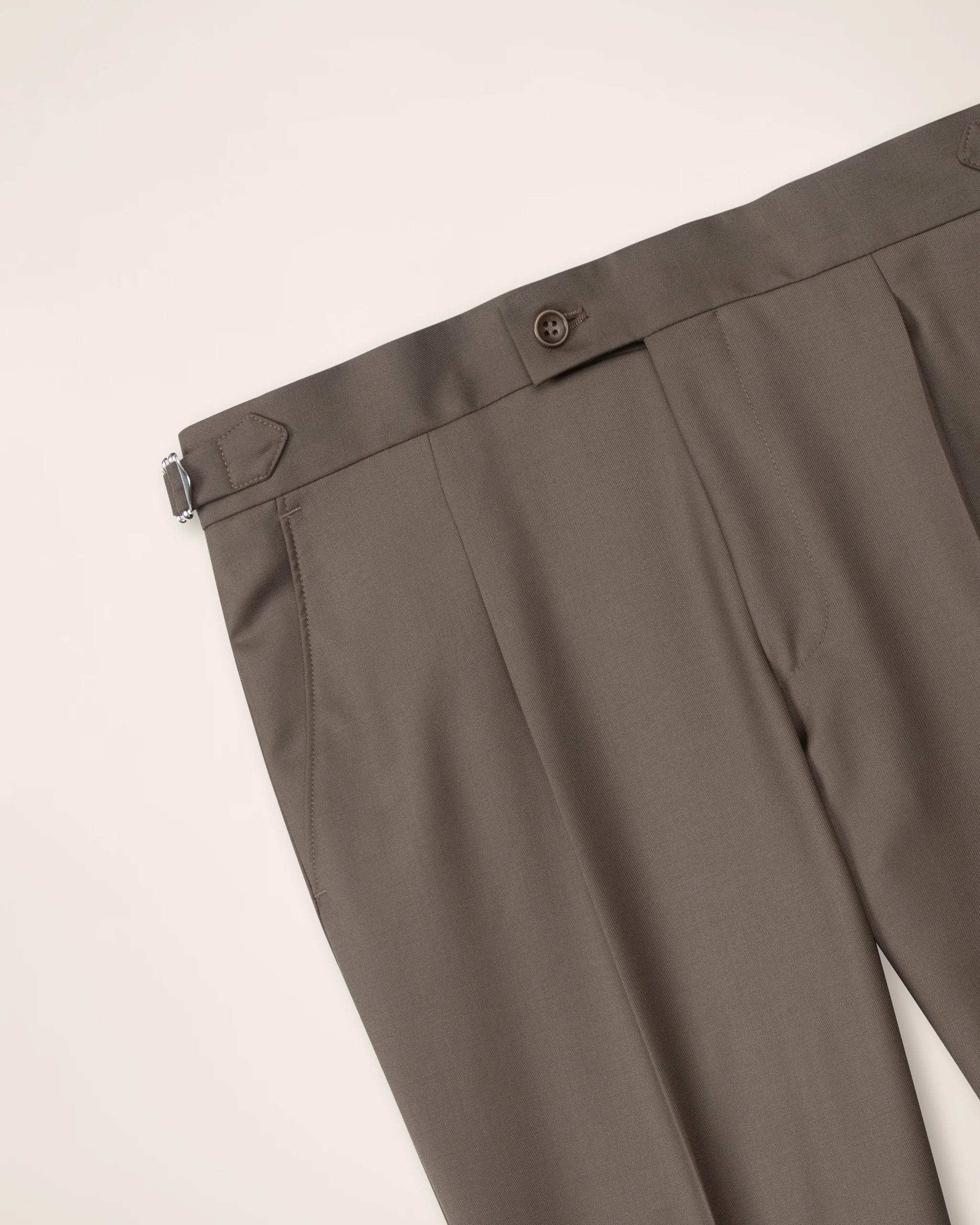 A stunning summer suit in luxurious Vitale Barberis Canonico wool. Tailored in slim fit. The mocca chocolate colour is a natural choise for all your spring and summer events. The trousers come with turn-ups, pleats and side buckles.